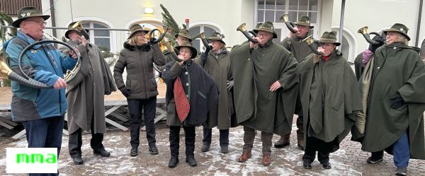 Den gut besuchten Adventsmarkt an der Sankt Jakobuskirche eröffneten am heutigen Samstag elf Jagdhornbläser unter Matthias Fenk