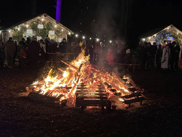 Buden der Vereinsgemeinschaft Sorghof umrahmten ein großes Lagerfeuer in ihrer Mitte und boten Leckeres zum Essen und Trinken an.