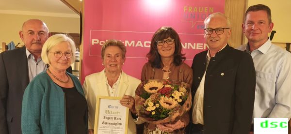 Die Frauen-Union Hahnbach und Umgebung, ist stolz auf Ingrid Kurz, denn unermüdlich setzt sie sich für die Frauen ein, sie ist Vorkämpferin und Vorreiterin. Ihr Einsatz in der Frauen-Union ist bis heute ungebrochen.