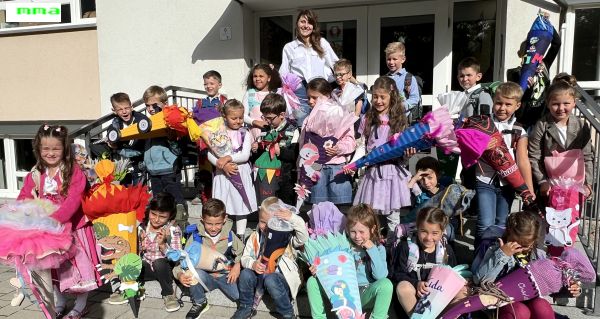 Ihr Wunsch war „viel Erfolg im neuen Lebensabschnitt und stets einen unfallfreien Schulweg“. Die Erwachsenen erwartete ein großes Kuchenbüffet in der Turnhalle, während die Kinder von ihrer Lehrerin kleine Geschenke bekamen und auch gleich erste Schulerfahrungen machen durften.