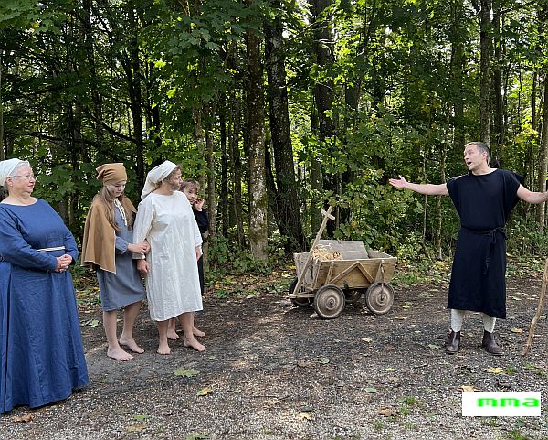 In einer guten Stunde erlebte man die Laienspieler als Verzweifelte auf der damaligen Fliehburg und auch die Missionierung durch irische Wandermönche. Das harte Leben der Vilsfischer wurderd anschaulich geschildert, wie auch die uralte Sage der weißen Frau, die dort vielleicht noch immer spukt. Thema war auch Erchinbertus, der Ministeriale des Bamberger Bischofs und sein verschwundenes Schloss auf dem Frohnberg.