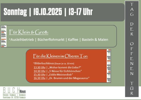 BUCHHAUS Hahnbach - Sonntag, 19. Oktober 2025 ab 13 Uhr, Ausleihbetrieb, Bücherflohmarkt, Kaffee, Basteln und Malen