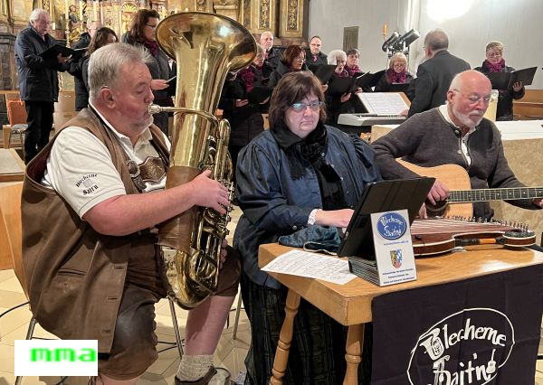 Die blechernen Saiten von Ingrid und Franz Gericke zusammen mit Sepp Donhauser ergänzten perfekt mit Tuba, Zither, Gitarre und Gesang