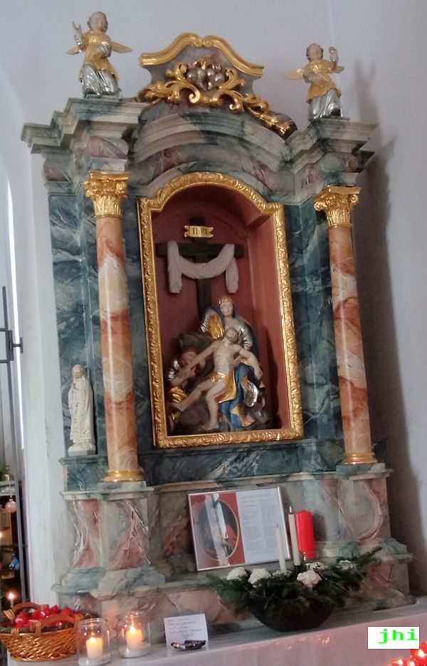 Rechter Seitenaltar - einfaches Rokoko um 1750 mit einer Pièta gegeißelter Christus