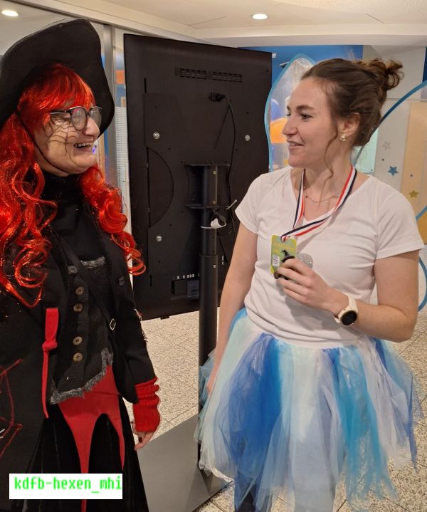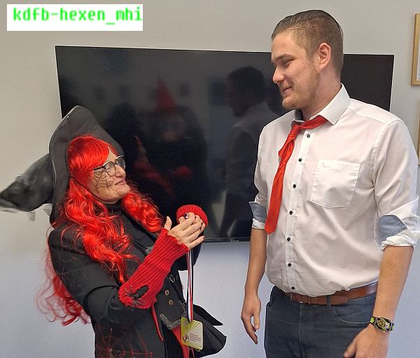 Eintreffen der Hexen und Begrüßung bei Elektro Winkler und der Postfiliale