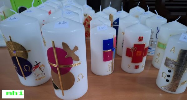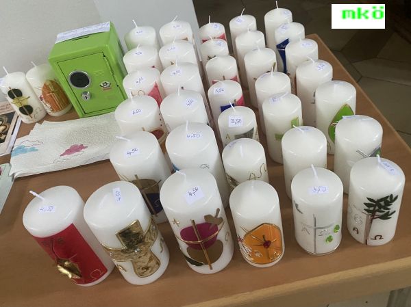 Acht mal zwei Hände stellten an zwei Nachmittagen im Kloster wunderschöne, individuelle Osterkerzen in zwei Größen her. Zu kaufen sind diese für 3,50 bzw. 4,50 Euro in der Pfarrkirche St. Jakobus in Hahnbach und bei Elektro-Winkler/Postfiliale, Sulzbacher Straße 4 in Hahnbach. Der Hahnbacher Frauenbund bedankt sich recht herzlich für Ihren Kauf und Ihre Unterstützung.