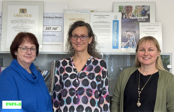 Die Geschäftsführerin Katja Stiegler (Bildmitte), Doris Beer (links), die Vorständin des Regionalwerks Amberg-Sulzbach und Sabine Weber (rechts), die Projektkoordinatorin „Lebensraum Goldene Straße“, sind mehr als glücklich, nun größere Büro- und Besprechungsräume zu haben