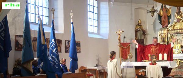 Zum Tag des Frauenbundes fanden sich auch fünf Fahnenabordnungen in der Bergkirche ein und feierten mit Pfarrer Markus Lettner die heilige Eucharistie