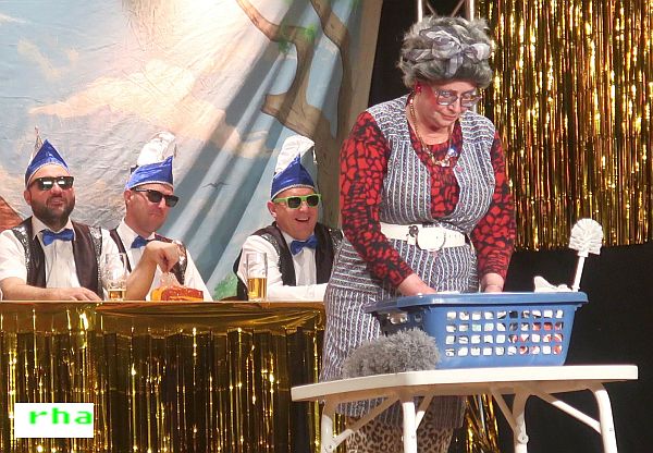 Als schließlich Ilona Weiß als „Kuni aus Sorghof“ vom Leder zog, blieb kein Auge trocken. Sie verstand es, mit einer Fülle von Tatsachen und Pointen aus dem wahren Leben voll zu punkten. Auch stellte sie fest, dass bei den heutigen Lebensmittelpreisen ihr Übergewicht als Kapitalanlage zu sehen sei, und dass ihr der neugekaufte Hula-Hoop-Reifen auf Anhieb wie angegossen gepasst habe.